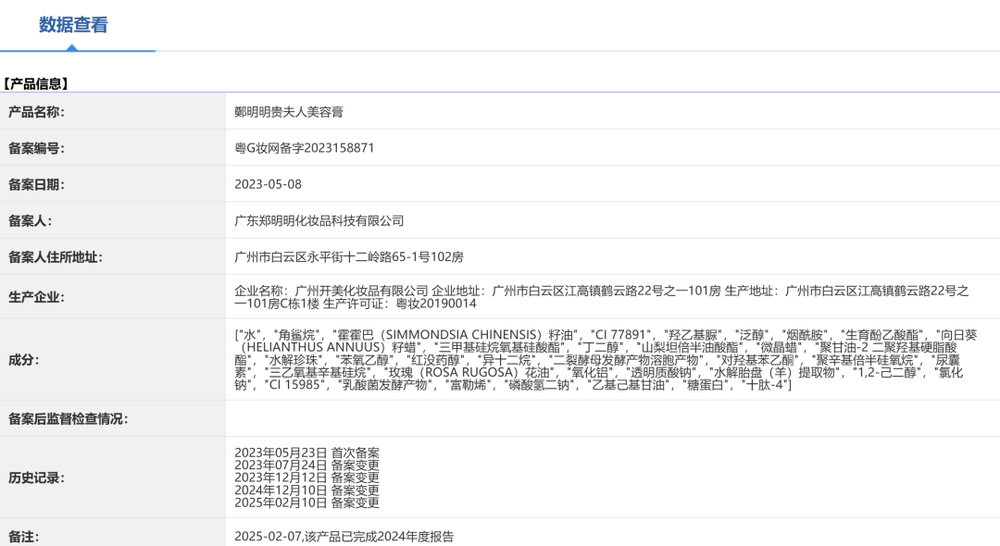 另一个目标客群为45-65岁银发精致女性(占比超50%)的品牌郑明明所推出的贵妇膏也同样添加了二氧化钛成分。