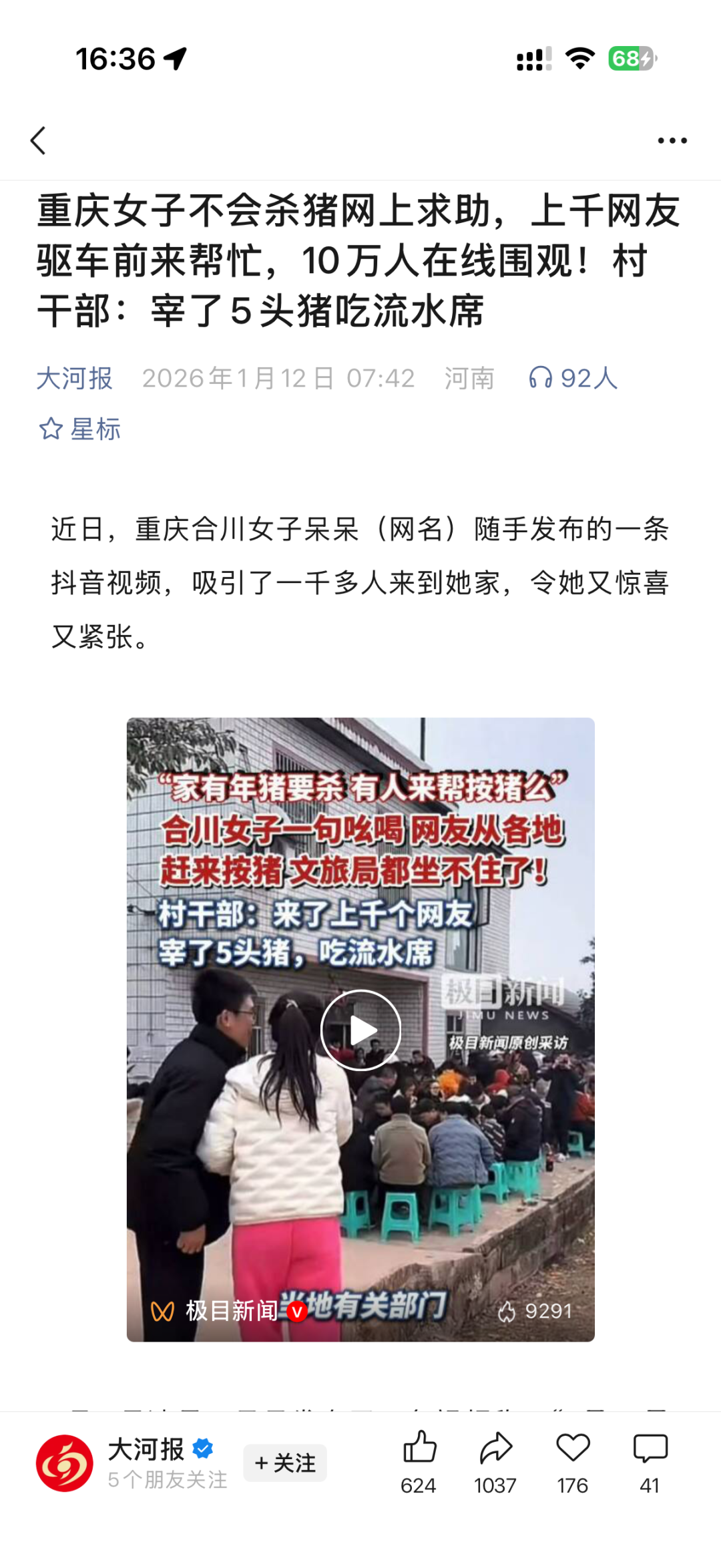 合川杀猪(乡村土味狂欢)与“死了么”(都市孤独焦虑)看似无关,实则遵循同一套流量逻辑:个体正常行为经算法放大后,演变为全民参与的meme(模因)狂欢,理性让位于情绪,然后爆发成闹剧。