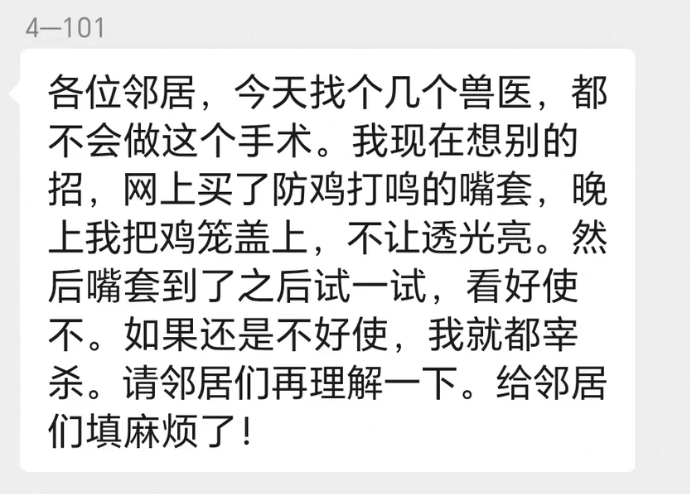 最后一个问题,也是每家爱鸡人士都头疼已久的事:打鸣。