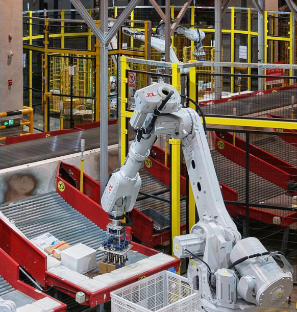 作为京东物流在英国布局的自动化标杆仓库,这一智狼仓占地面积超3000平方米,内部部署近200台智狼机器人。得益于这些智能设备的高效运转,该仓库拣货及出库效率实现约4倍的大幅提升。