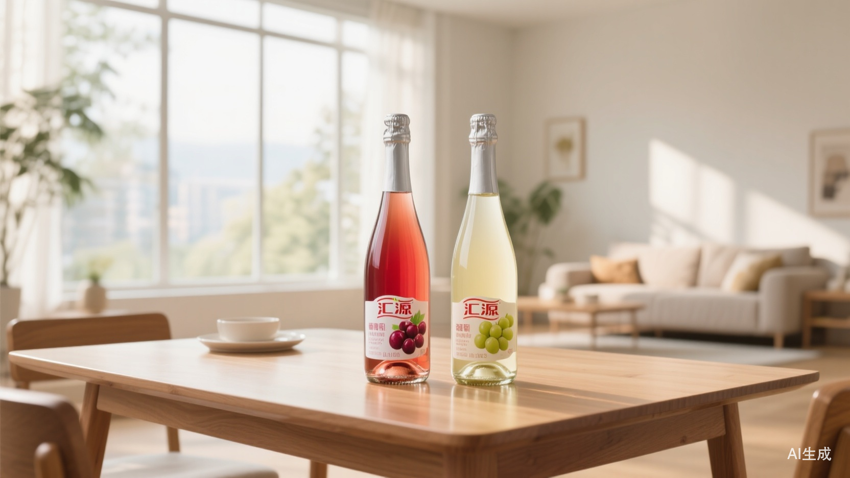 从产品信息来看,汇源红葡萄起泡酒酒精度为8%vol,原果浆含量≥80%;白葡萄起泡酒酒精度为10%vol,原果浆含量≥99%。两款产品产地均为河北张家口市,委托方为北京汇源食品饮料有限公司,强调“低度”“果味”和易饮属性。