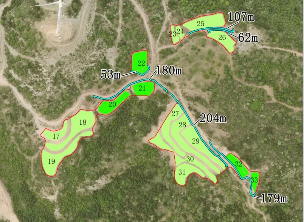 为了还原山脊连贯的形态,我们将第21、22号地块那些近乎垂直的土壁推倒、重塑,转化为坡度舒缓、易于通行的缓坡。所有改造后的坡度都被控制在30度以内,并在坡面上种下树苗,用根系固定水土,也为未来行走其中的动物提供遮蔽。