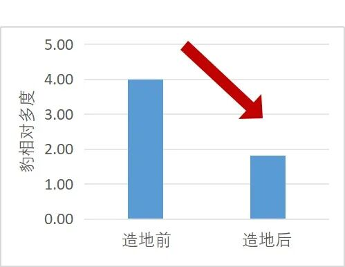 可以看出土地开发后该区域监测到的豹个体数量减半,反映出土地变化对豹活动频率和使用强度产生了直接影响