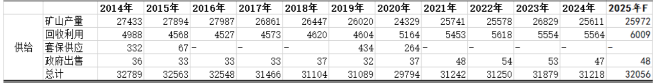 数据显示,2022年、2023年和2024年,白银供应量分别为3.125万吨、3.188万吨和3.12万吨,供给刚性较强。