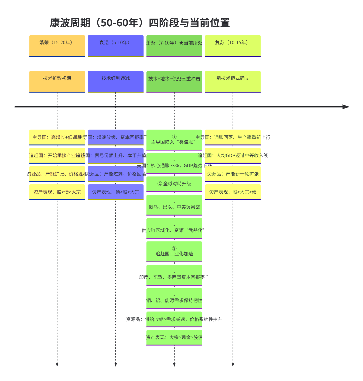 眼下主导国尚未摆脱类滞胀,追赶国的需求也仍具韧性,康波周期的萧条期显然尚未走完。