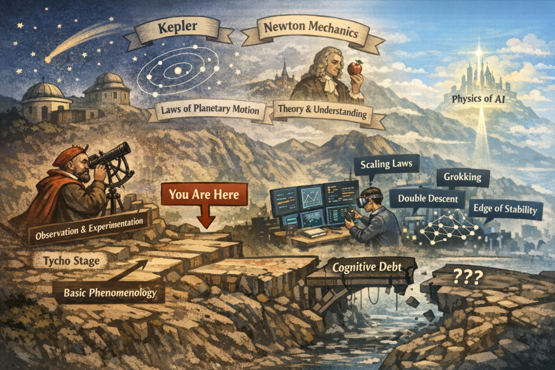 当前多数AI研究者分属两类:计算机背景研究者以算法设计、提升数据集指标为核心目标;数学背景研究者则倾向于从第一性原理展开推导。而物理作为实验驱动的学科,让物理背景的我高度重视实验、观察与玩具模型的构建,同时培养了适度的理论精神。
