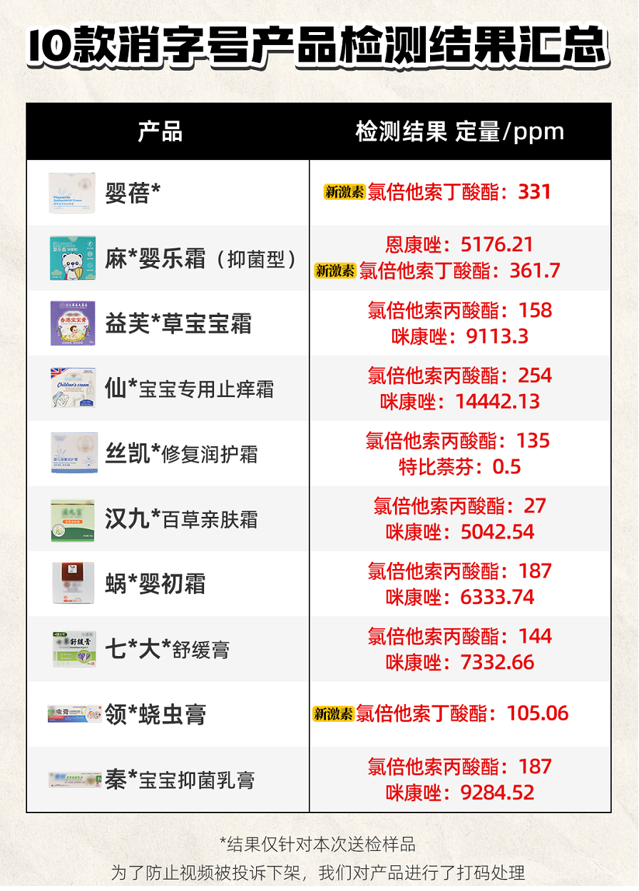 “消”字号宝宝霜似乎已经成为非法添加抗生素、激素的“重灾区”。