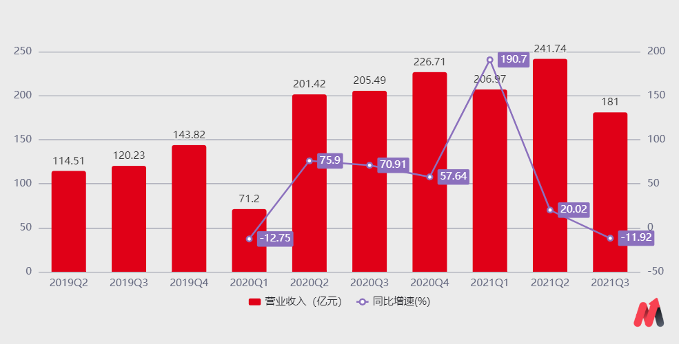 2021年三季度,贝壳营业收入达181亿元,同比下降11.9%;净亏损17.66亿元,去年同期净利润为0.75亿元,同比转亏。