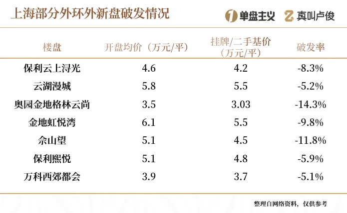嘉定江桥的保利云上澄光、松江泗泾的招商9号公馆溢价几乎消失
