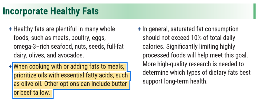 甚至连美国的新版膳食指南也没敢推翻饱和脂肪酸低于10%膳食热量这条红线。但为了夹带MAHA网红营养学的牛油黄油私货,新版膳食指南出现了荒唐的自我矛盾。