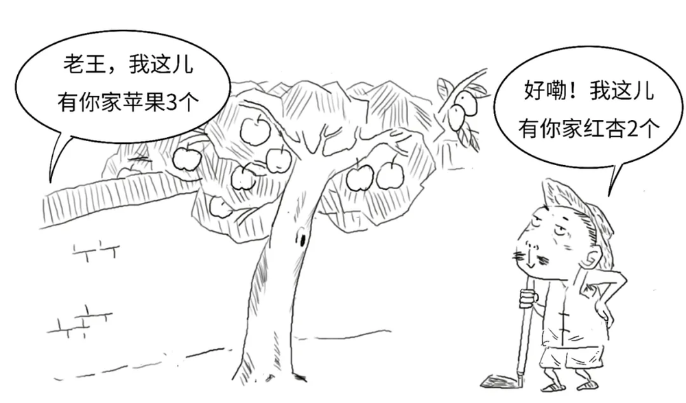 于是老王和老张约定,若对方果子长到自家院子中,就互相通报对方果子的情况。