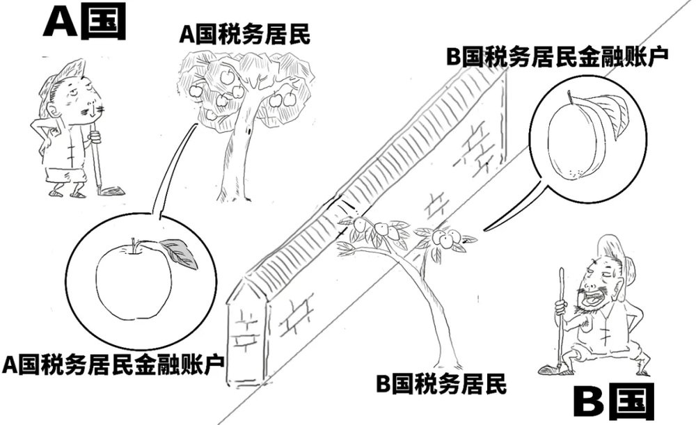 CRS就类似以上情景。老王和老张相当于两个国家,果树相当于在两个国家有纳税义务的居民,即税务居民,果子相当于税务居民的金融账户。