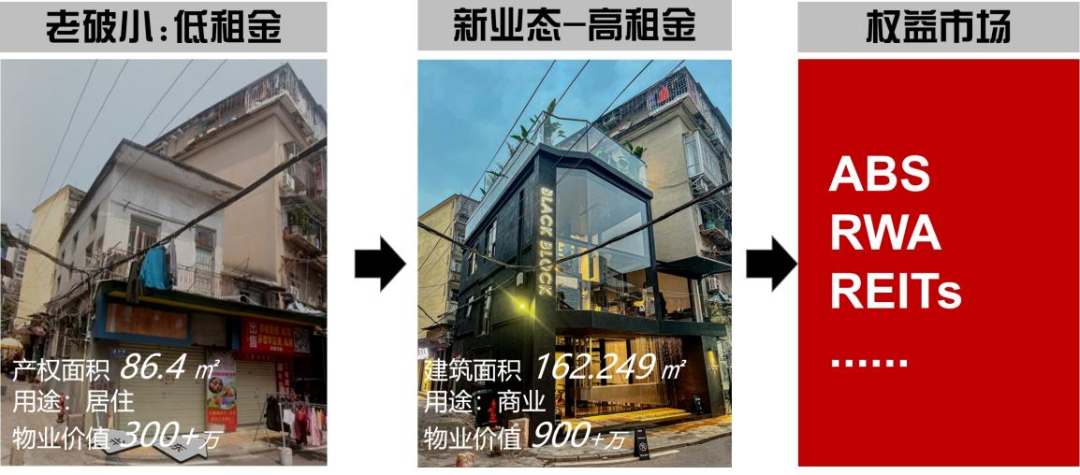 城市更新最大的难题就是没有钱。比如很多城市“老破小”位于城市的黄金地段,但如果真让居民拿出钱来对其进行改造,很多居民却负担不起。这些居民坐拥巨额名义财富,却蜗居在狭小、简陋的破旧房屋里。如果有了权益市场,居民就可以用更新后升值的物业做抵押,向银行贷款。如此一来,“老破小”产权人无需转让物业,即可将物业权益用于改造自身房屋,然后逐年偿还(或在未来的交易或继承时,由下一个产权人补缴)。