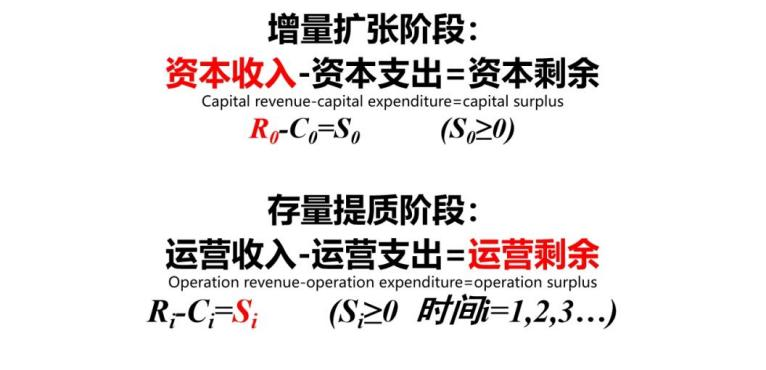 按照两阶段增长模型,城市化增量扩张阶段对应的是资本型增长阶段,主要是建设城市公共服务所需的各种基础设施。涵盖各类场站,如机场、车站、水厂、电厂、学校、医院、公园,以及管线(七通一平);存量提质阶段对应的是运营增长阶段,主要是维护和优化已有基础设施的运营效率,提升公共服务质量与城市功能的整体协同性。这一阶段的核心任务不再是大规模投资建设,而是通过精细化管理、数字化赋能和制度创新,实现资源的高效配置与资产的价值持续释放。我们可以用一组公式分别表示两个阶段: