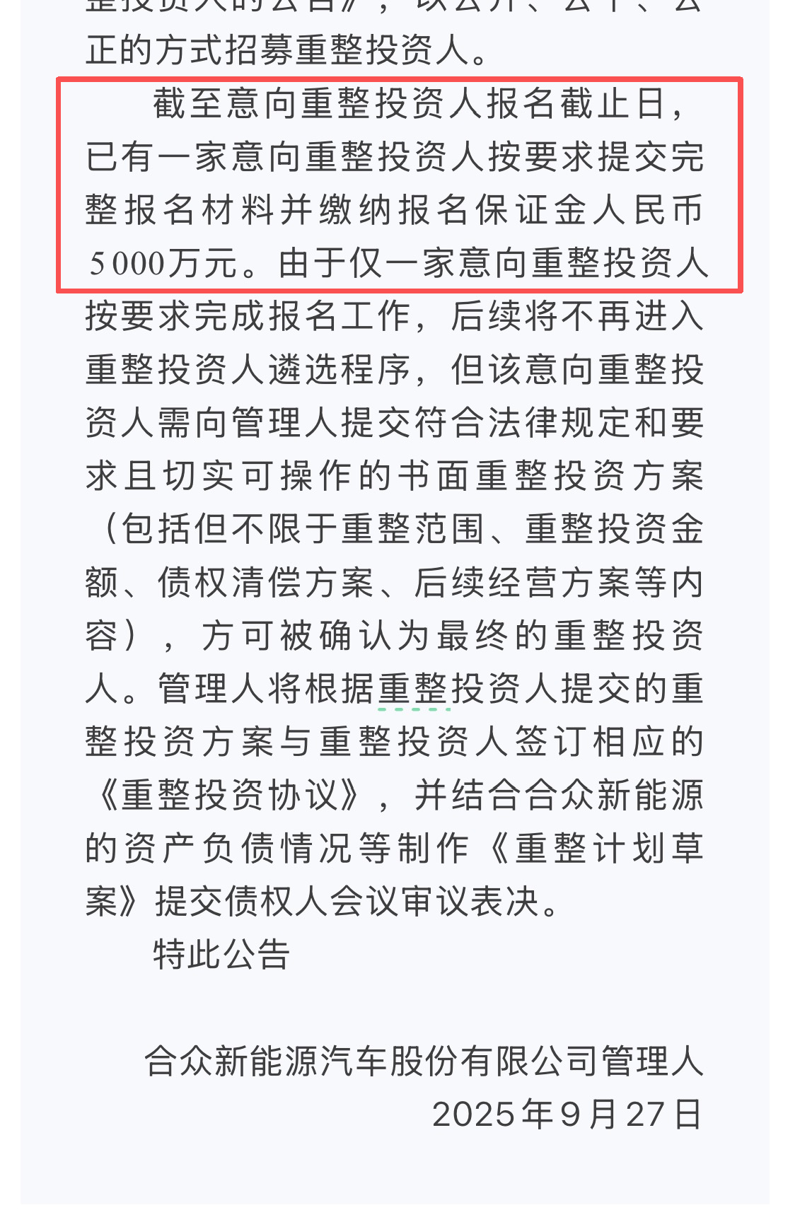 合众新能源重整已进入关键阶段,图片源自合众新能源管理人公众号