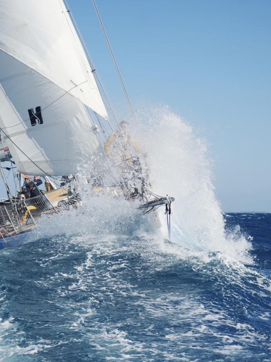 从塔斯马尼亚岛南部绕行进入太平洋,让Leg4成为环球航海中纬度最南的一段,比leg3更冷,18天赛程里有两周时间逆洋流航行,顶风顶浪,颠簸且倾斜,好比骑自行车遇上上坡+逆风。