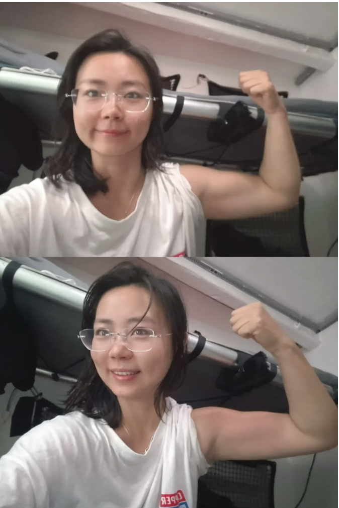 为了防止船舱里意外跌倒,我们拉了绳索。每天走路都像是蜘蛛侠吊单杠一样,脚踩在棉花上,全靠胳膊发力。