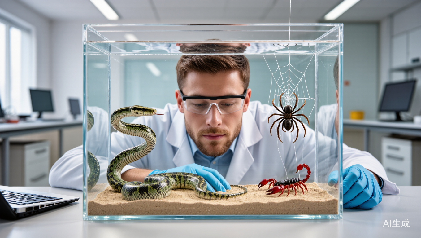 我们实验室饲养的绝大部分有毒动物,都是我们在野外采集的。