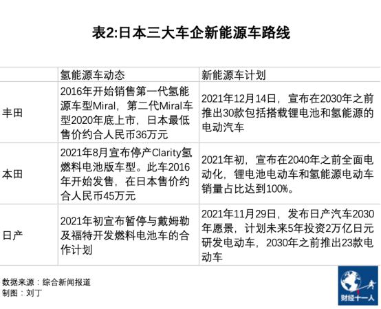 2021年初,日产宣布暂停与戴姆勒及福特开发燃料电池车的合作计划,将力量集中于发展锂电池电动车。6月,本田也宣布停产旗下的氢能源车型,主要原因是成本过高导致销量惨淡。
