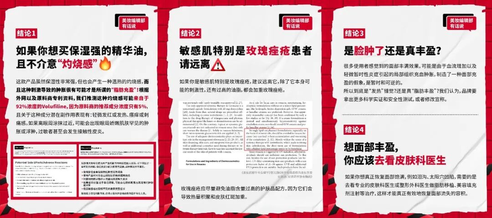 小红书账号美妆侦探社发布的帖子《The Ordinary丰盈精华3大科学质疑》中,对Volufiline人体研究提出了多重质疑: