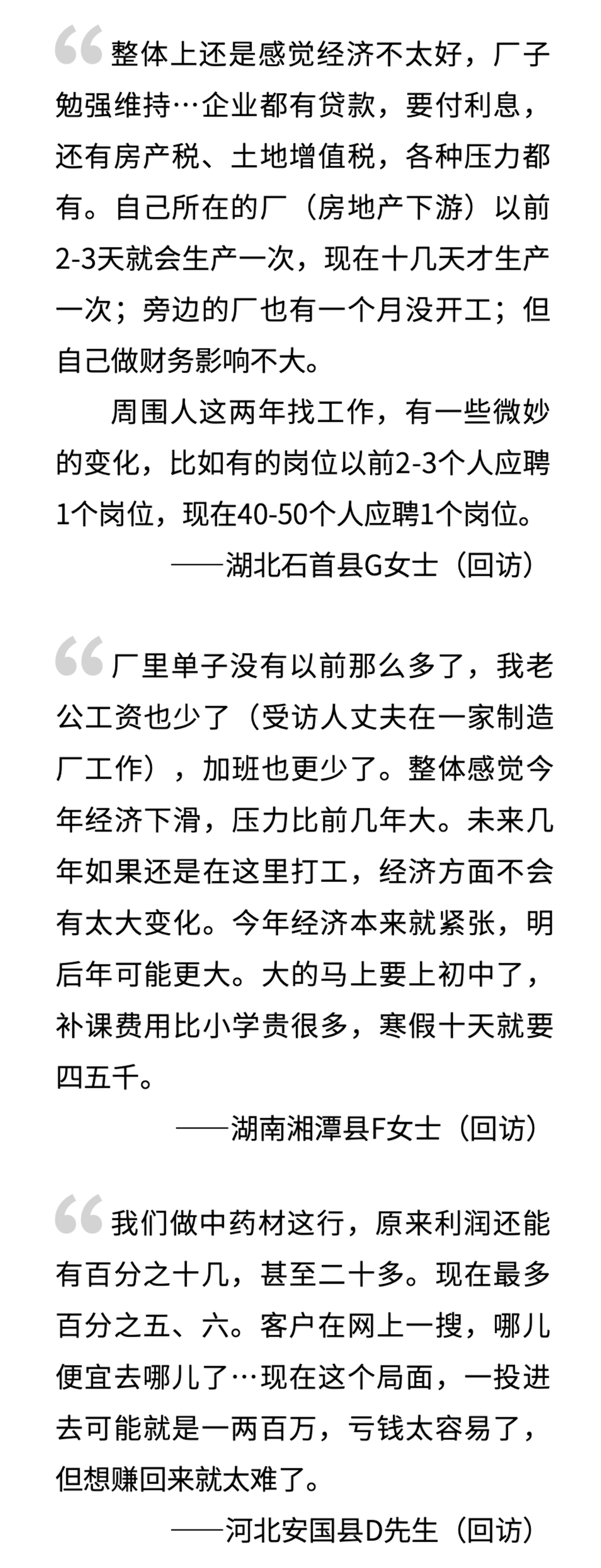 部分受访者或其家人所从事的行业,确实受到了宏观经济与地方产业转型带来的影响。