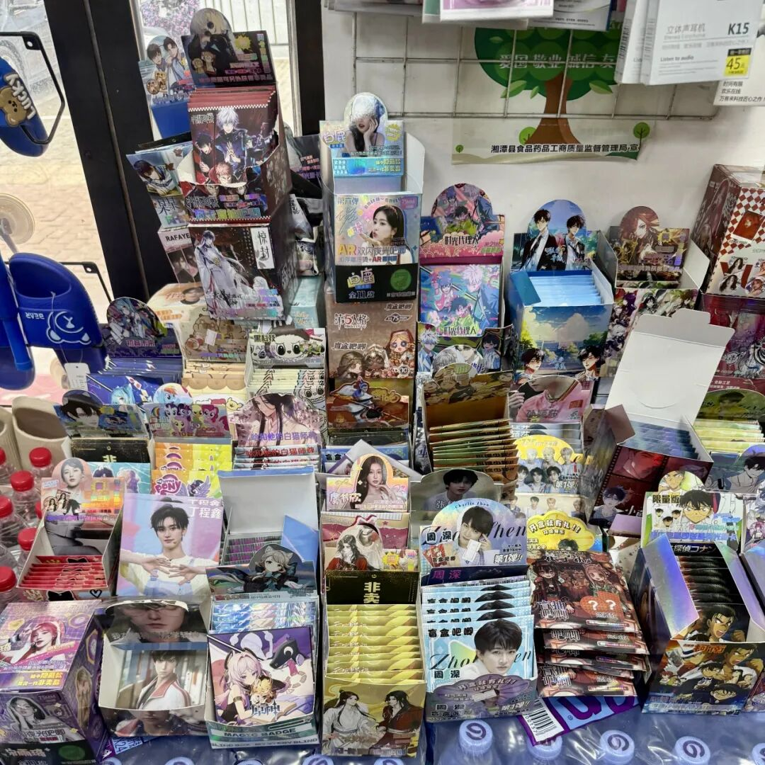 以IP商品作为观察窗口,根据2025年田野走访,我们在当地学校附近的文具店、小卖部、书城等渠道,看到IP类产品的货架占有率较高,并且均被放置在靠近门口的主要柜台。除了个别定价较低的品牌化商品外(如某品牌定价小于10元的卡牌),更多是无版权商品。