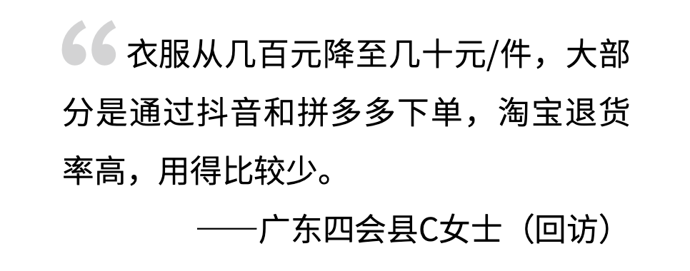 在对超市调改店的走访中,我们看到7.9元的定制牛奶、价格实惠的自有品牌商品,消费者因此也能够以更低成本享受同等品质的商品。拼多多的深度渗透,则让县域消费者能够买到39元的运动瑜伽套装,29元的速干服饰等等。
