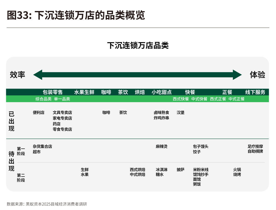 在生鲜、大店正餐等品类因“规模不经济”导致连锁化非效率最优解时,另一条清晰的赛道正在县域市场浮现。