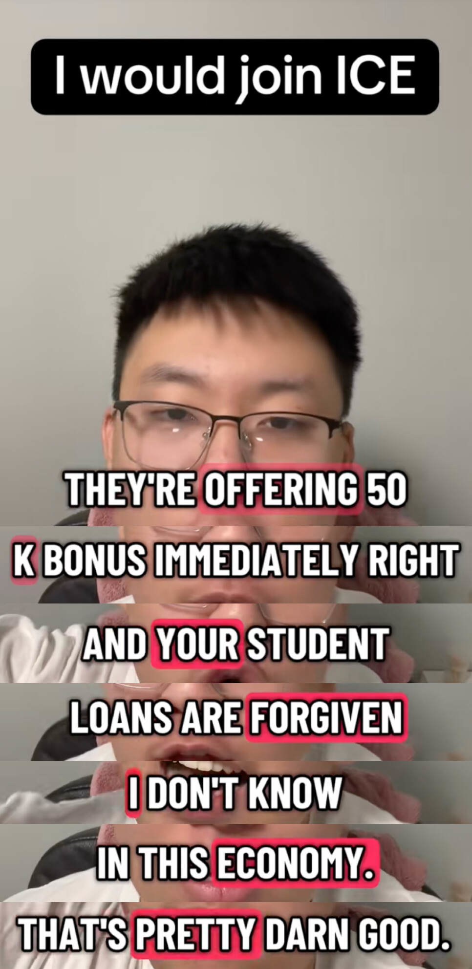 一位亚裔学生说了真心话:讲真老兄,我不知道。在这个经济环境下,我是真想加入ICE