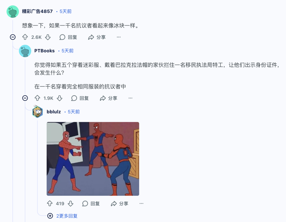 虽然后续流出的信息已经证明,他们这番操作针对的其实是玩偶服里的示威者。但这些视频过于抽象,流传甚广,到最后变成了一则规则怪谈:一旦穿得非常前卫,被ICE注意到的几率便会更高。
