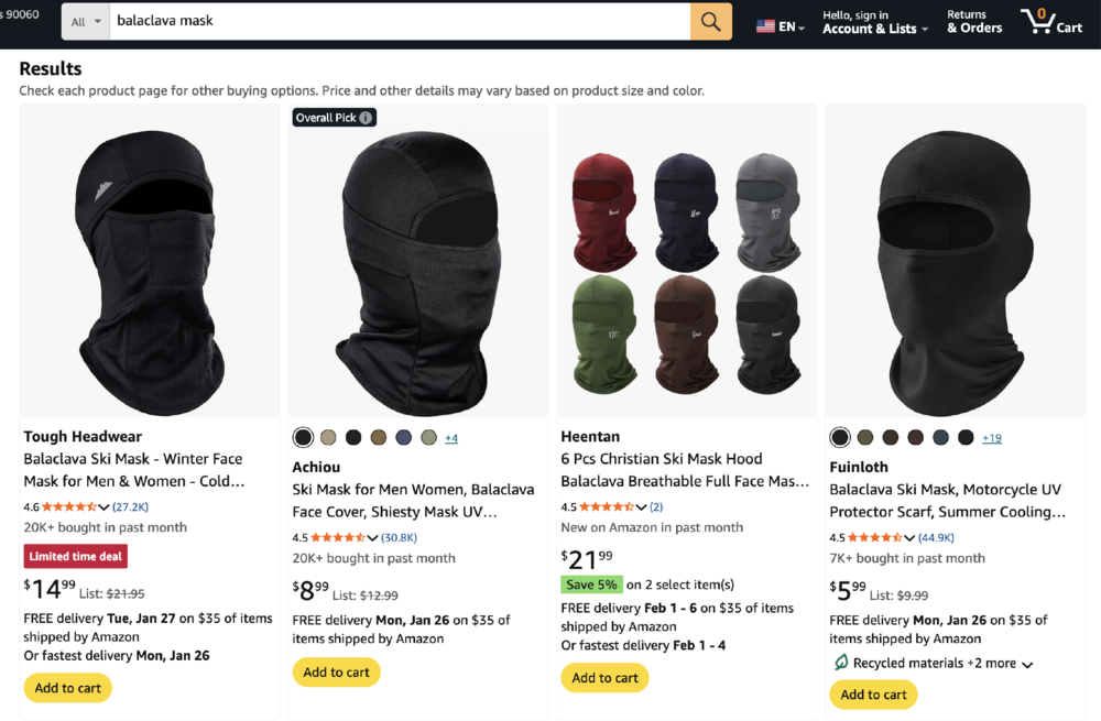 我上Amazon看了一下,最便宜的面罩也就5美元出头。也就是说人民币50块左右,就能让你在大街上宾至如归,ICE看了都要喊一句欢迎光临。妙哉。