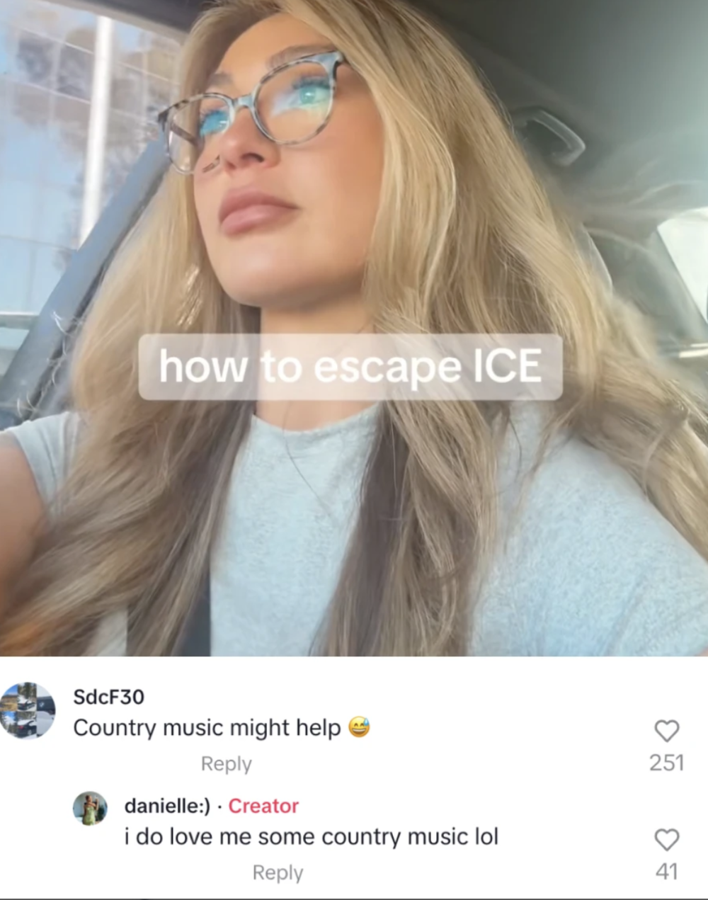 “为了让紧跟在后面的ICE知道我是‘自己人’,我把窗户摇下来并开始播放一些美国乡村音乐。”