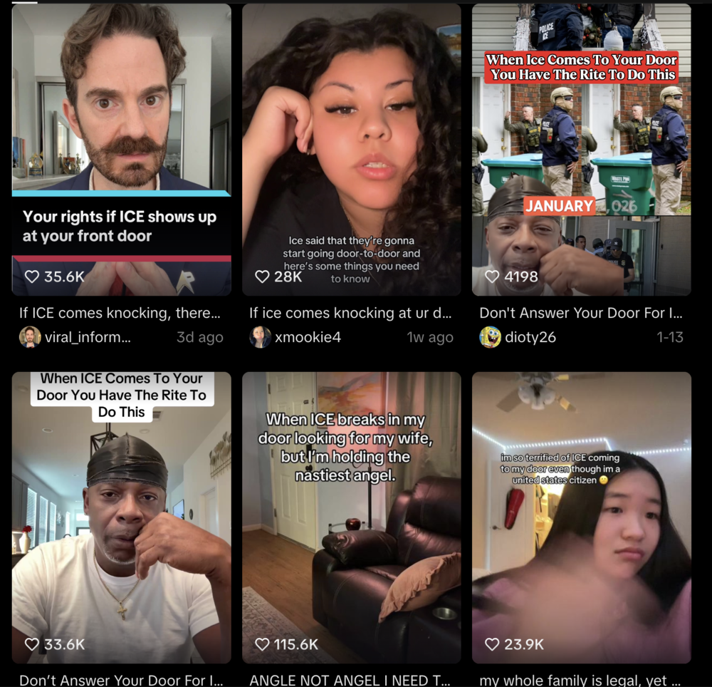 其中一个原因是,现在的ICE在部分地区提供贴心上门服务。一些群众声称,他们会像万圣节讨要糖果的小孩子们一样,一个接一个地在社区里敲门,索要居民的身份证明,甚至趁机破门而入。