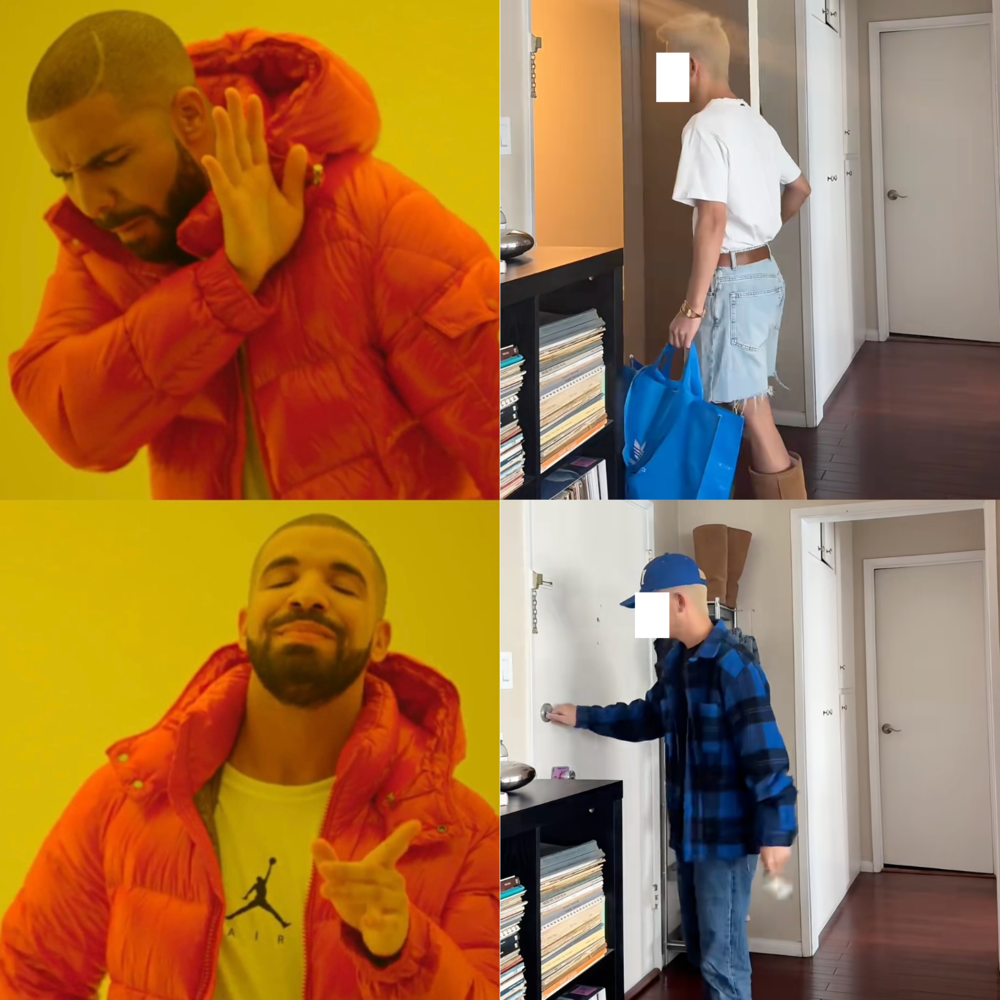 潮男们的巴拉克拉法帽不敢戴了,破洞牛仔短裤和大靴子也不敢穿了。肥大帽衫和运动短裤,或者老实人的格子衬衫搭配直筒牛仔裤才是最好的吉利服。