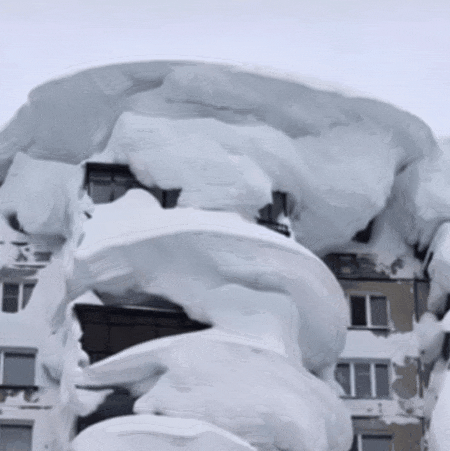 其中,“雪比楼还高”的图片是真的。这种现象,并不是单纯的积雪有这么厚,而是被风和地形一点点堆出来的。连续多日的强降雪+强风+特殊地形,把雪不断推向建筑的迎风面,越堆越高。清雪速度跟不上,就会形成夸张的雪墙,看起来整栋楼都被埋进了雪里。