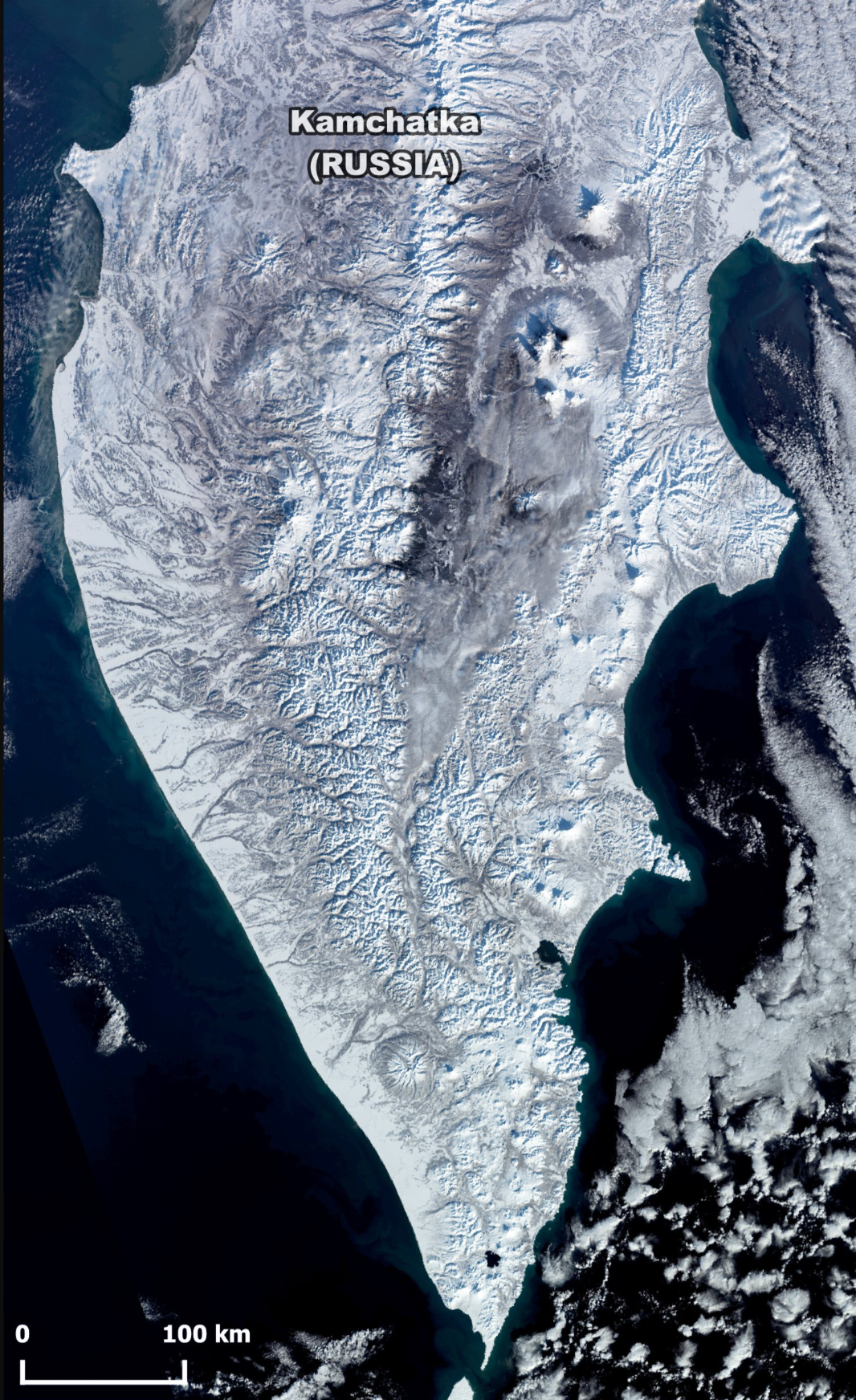 1月17日,从卫星上俯瞰堪察加半岛▼
