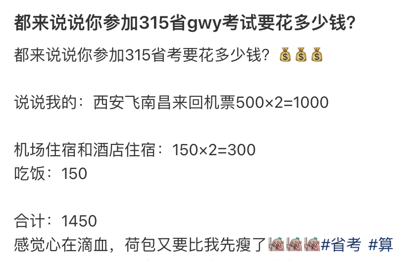 类似的互联网话题下,网友们分享的跨省考公花销也大多在千元以上。