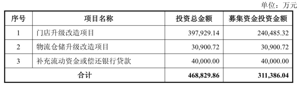 不过两个月后,永辉超市再度抛出一份“缩小版”的方案,即将募资额从39.92亿元下调为了31.14亿元。其中“门店升级改造项目”的金额从32.13亿元缩减为24.05亿元。“使用募集资金进行调改的门店数由298家调整至216家,剩余门店公司将使用自有资金进行调改”。