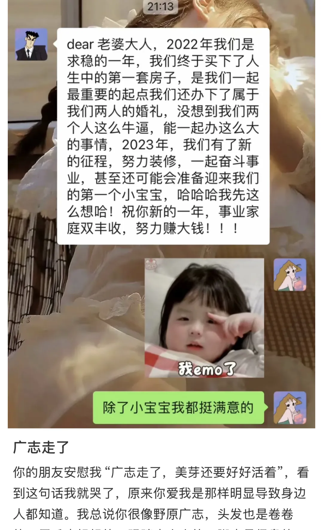 “如果制度不改变,永远会有更多的高广辉出现。”广志的头像已经不再跳动,美芽头像的高广辉妻子留下了她恳切的祝愿。