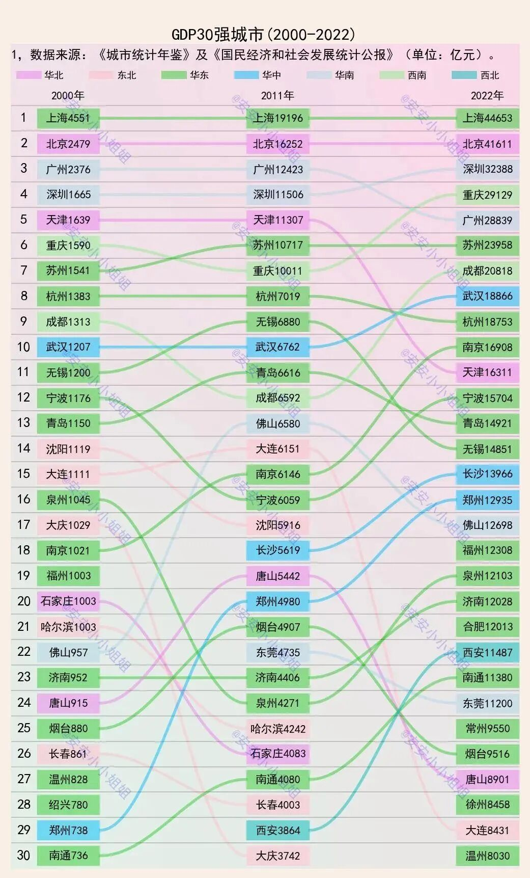 大连的晋级,意味着全国七大地理分区——东北、华北、华中、华南、华东、西北、西南,全部拥有了万亿GDP城市。