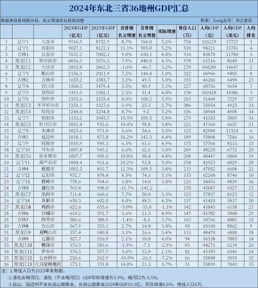 数据显示,2015年之前,大连都还能跻身全国前20强;2000年时,沈阳、大连、哈尔滨差不多都还能进入全国前20强;更早时期,东北F4,都是全国十强城市。