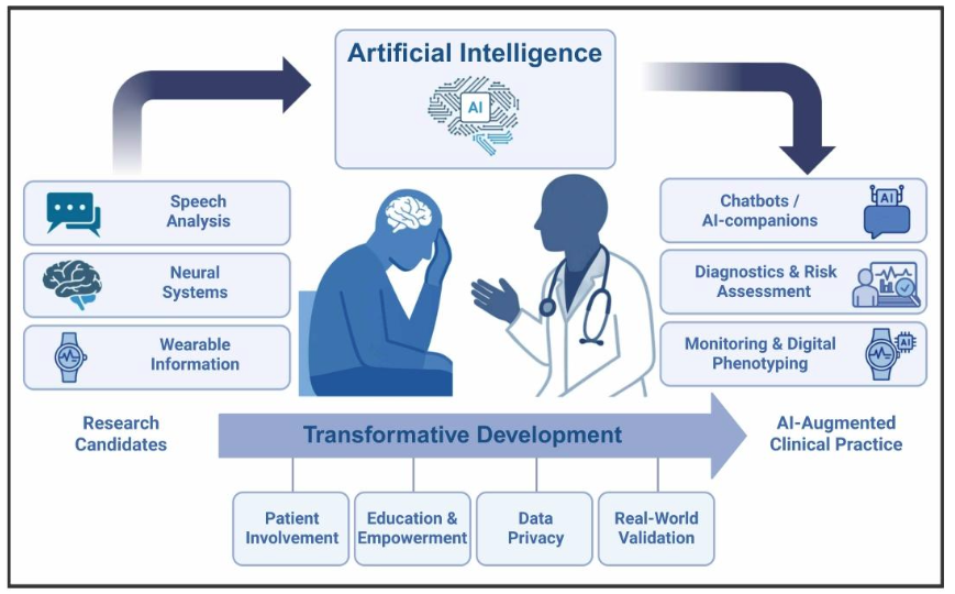 而AI的崛起,恰好为填补这个认知缺口提供了可能——它擅长处理复杂数据、发现隐藏模式的能力,似乎能破解心理健康的主观困境。但AI与心理健康的结合,又面临隐私保护、情感共鸣等独特挑战。正是这种需求迫切+技术可行+挑战独特的矛盾,让这个问题成为科学界必须深究的重要课题。