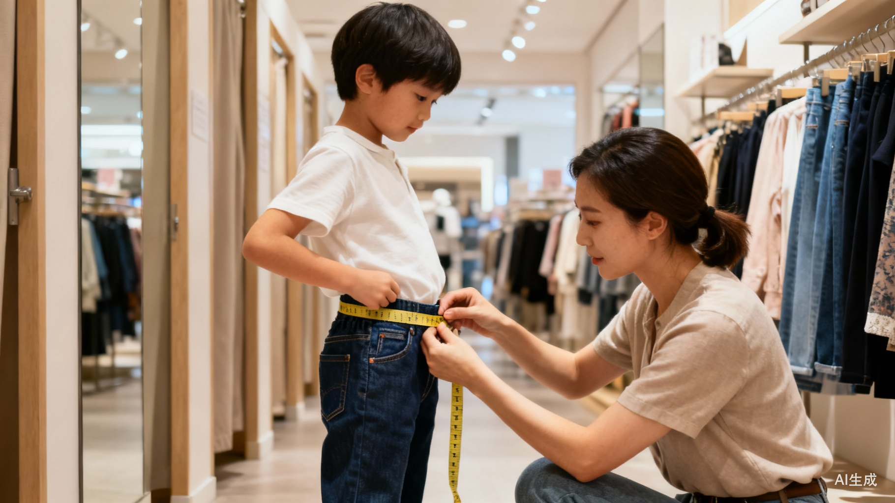 这是他们当天试的第七条裤子。黄女士清楚地记得小宇的尺码——腰围2尺1,臀围却需要2尺9。这样的尺码组合在青少年服装区几乎找不到。