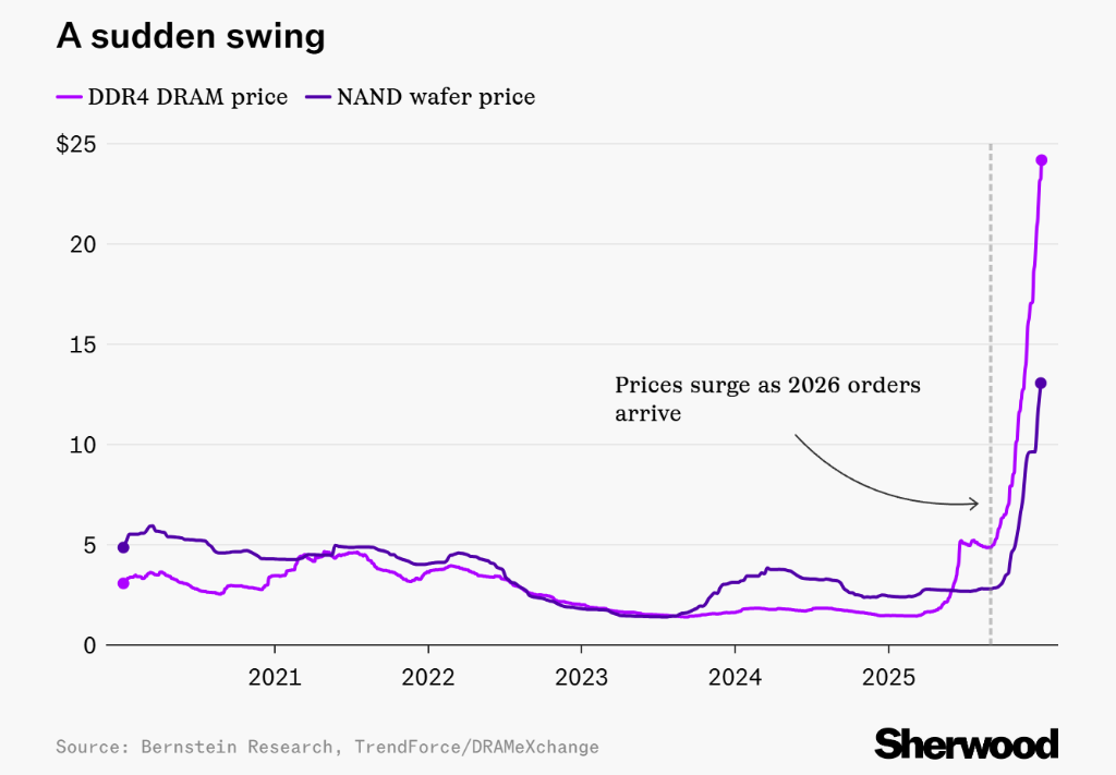 此次行情的爆发令华尔街措手不及。就在去年8月的一次行业会议上,分析师和供应商普遍认为市场将在冬季放缓,直到2026年才恢复增长。然而,仅仅一个月后,芯片抢购潮爆发,价格飙升。
