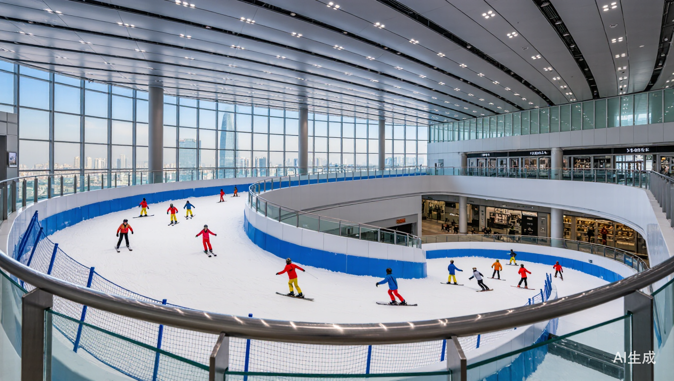 现如今的南方室内滑雪场,并不是一块单纯的运动场地,而更像是嵌套在商业综合体中的一部分。比如上海的耀雪冰雪世界,除了超过9万平方米的室内雪场,还同时布局了全天候水上乐园、赛事级冰场、酒店,以及围绕冰雪主题展开的商业和休闲空间,覆盖滑雪、娱乐和度假等多种需求。深圳前海冰雪世界也是类似的思路,在超过40万平方米的综合体中,滑雪场只是其中一环,还配套了包含卡丁车、雪地转转和冰雕展等项目在内的冰雪乐园,以及融合冲浪、攀岩等项目的运动体验空间,甚至还入驻了运动康复中心。综合体的商业区还引入了来自欧洲、日本的滑雪装备品牌和运动潮流品牌。
