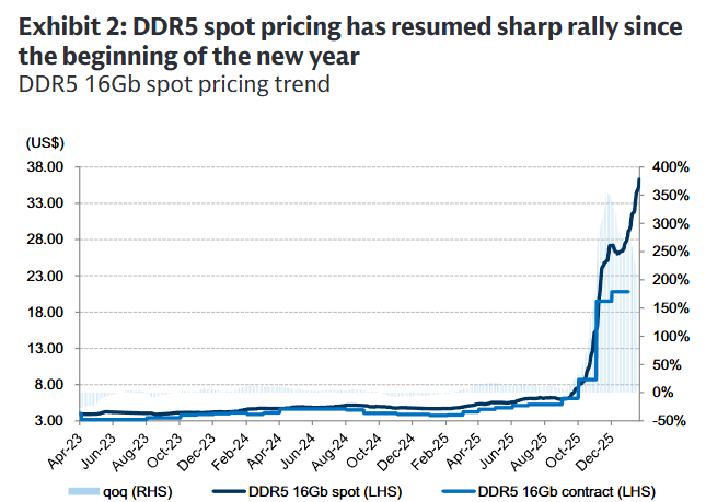 根据高盛核查,移动市场的某些客户已经开始接受2026年第一季度的价格报价,在DRAM和NAND方面,其增长率明显高于2025年第四季度所商定的水平。
