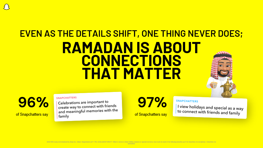 更多的室内互动,也直接推动用户注意力向移动端与社交平台高度集中,为品牌创造了全新的叙事语境与触达机会。在中东用户高频使用的社交平台中,Snapchat 恰恰覆盖了其中最密集的亲友沟通、熟人互动与内容分享场景,成为品牌在冷斋月中连接消费者情绪与消费决策的重要入口。