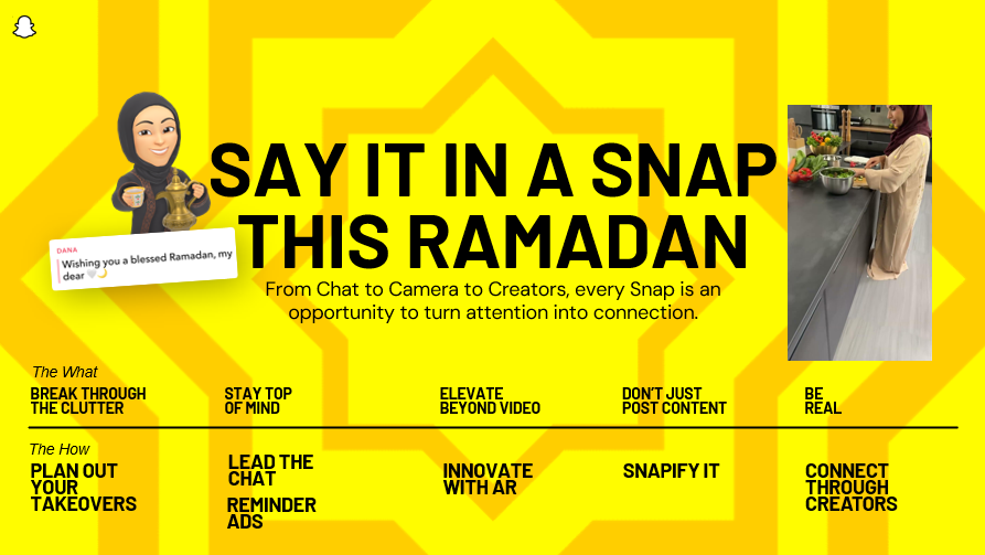 但这只是 Snapchat 营销能力的一个切面。为了帮助品牌更系统地把握斋月这一关键窗口,Snapchat 近期发布了覆盖电商、短剧、游戏、应用等多个行业的《2026 斋月营销指南》,从“什么时候说什么”“用什么形式说”,到“如何完成转化”,为品牌提供了一套可落地的斋月营销框架。