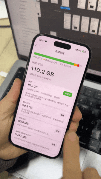 白依鹭的手机存储只有 256GB,每次要为腾空间,清理微信是必经步骤,但微信按文件/聊天大小排序的清理逻辑在她看来很荒谬:“应该考虑的是内容本身,以及聊天对象对我的重要程度。”