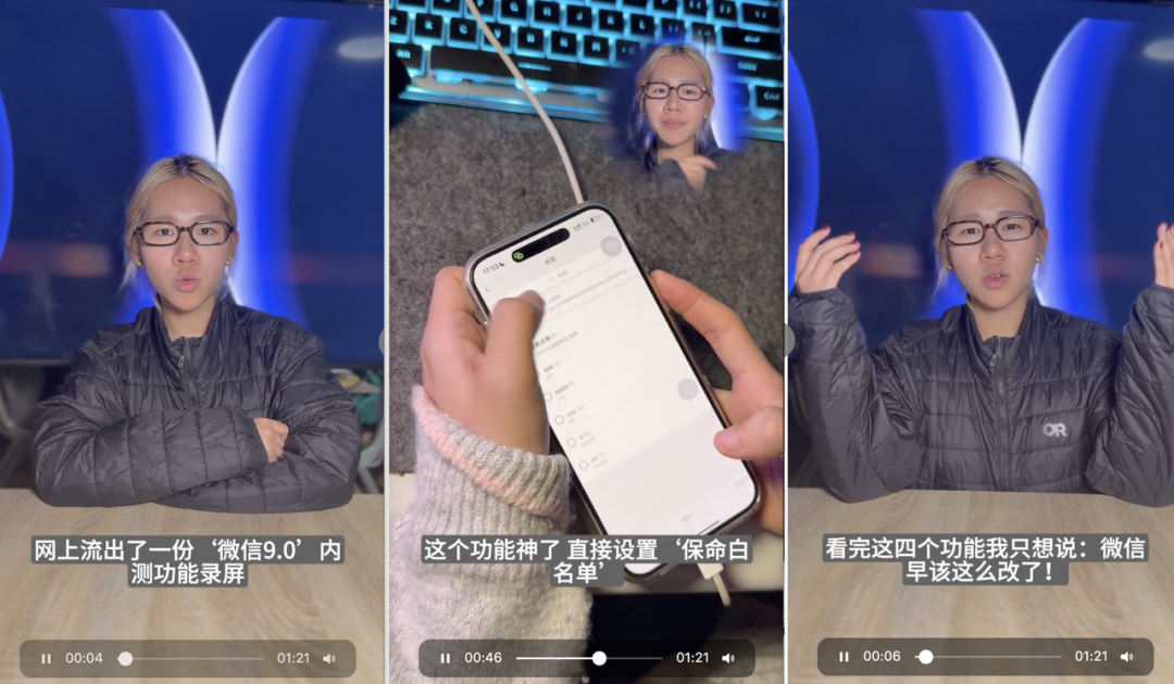 她说,现在自己理解了微信团队的难处,也更加佩服他们能在种种限制下维持产品的稳定运行。